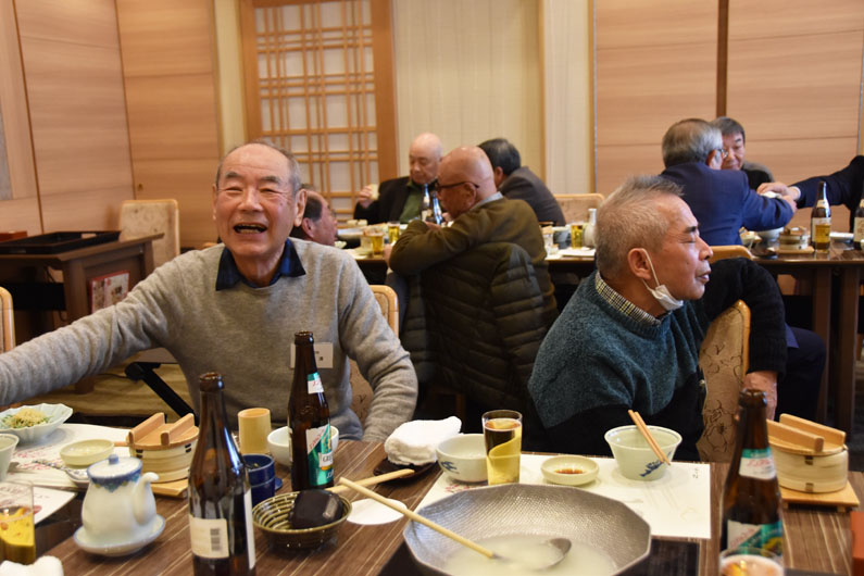 美味しい料理と地酒・ビールで喉も潤い、高橋相談役のマジックショー、カラオケのど自慢と最高潮。あっという間に時間となり、フィナーレは高らかに「青い山脈」を合唱し、盛会のうちお開きとなりました。 |